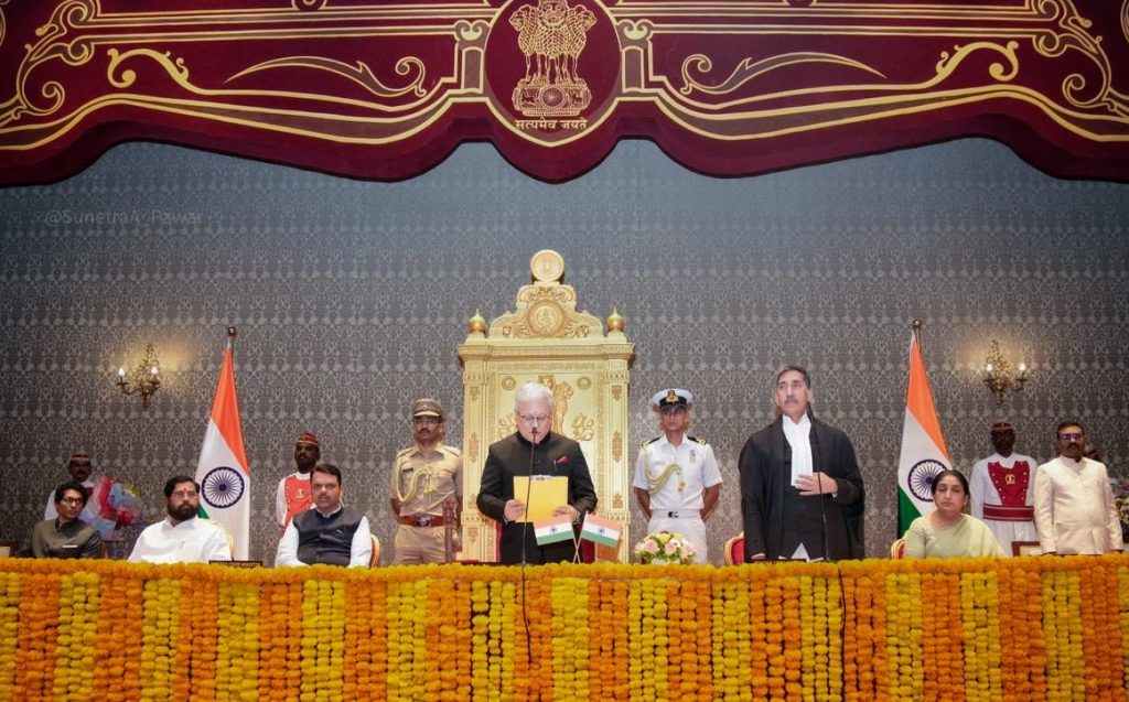 महाराष्ट्र के नवनियुक्त राज्यपाल जिष्णु देव वर्मा ने मंगलवार को राजभवन में आयोजित गरिमामय समारोह में पद और गोपनीयता की शपथ ली। मुंबई उच्च न्यायालय के मुख्य न्यायमूर्ति चंद्रशेखर ने राजभवन के दरबार हॉल में उन्हें शपथ दिलाई। इस शपथ ग्रहण के साथ ही जिष्णू देव वर्मा महाराष्ट्र के 22वें राज्यपाल बन गए।