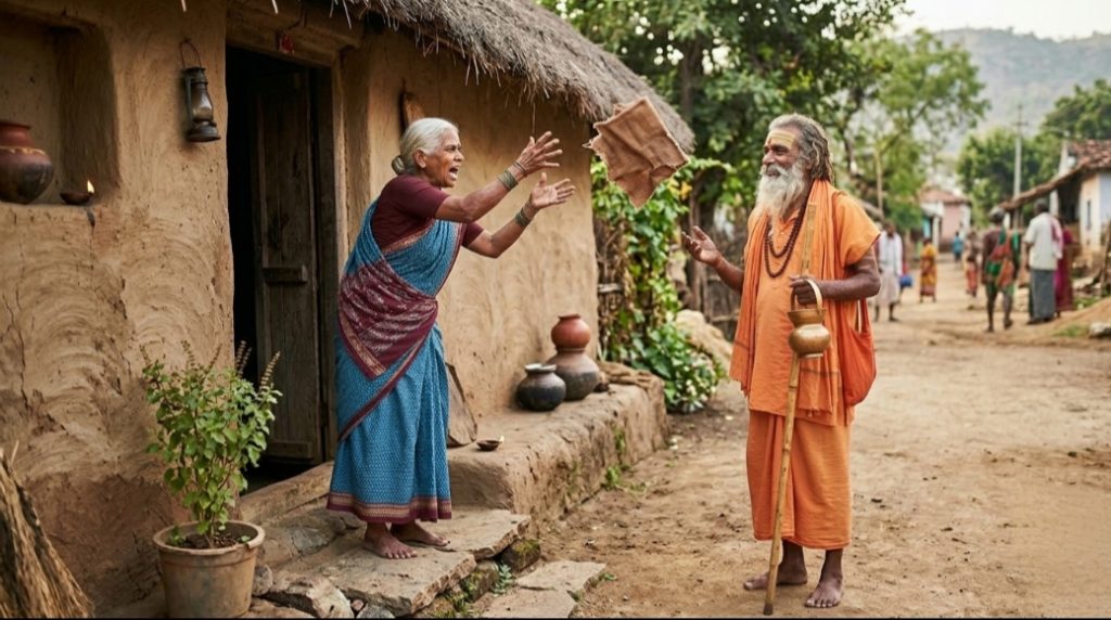 दीपावली आने वाली थी। नगर में सभी अपने-अपने घरों की रंगाई-पुताई में लगे थे। वह माई भी क्रोध से भरी हुई, भगवान को भला-बुरा कहती हुई, एक कपड़े का पोता बनाकर अपने आँगन की दीवार पर रंग पोत रही थी। संयोग से संत माधवदास उधर से गुजर रहे थे। उस दरवाजे के पास आकर वे संत भिक्षा माँगने लगे।