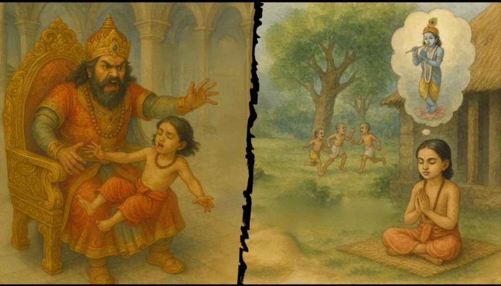 मार्कण्डेय ने कहा, ‘उसी क्षण के प्रभाव से गर्भस्थ बालक प्रह्लाद जन्म से ही भगवान विष्णु का अनन्य भक्त बना। यह भगवान की लीला थी कि विष्णु-द्रोही के घर में महान विष्णु-भक्त का जन्म हुआ।’