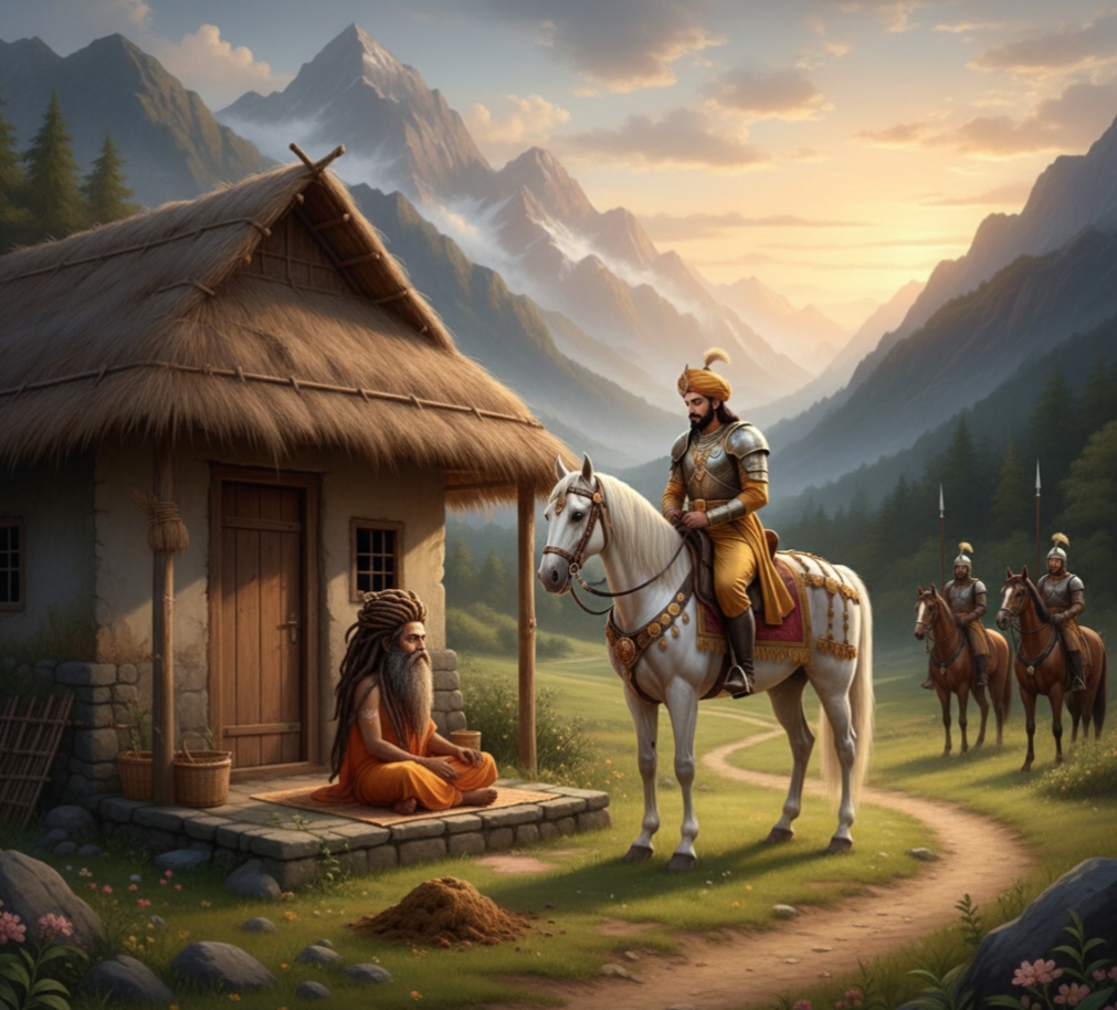 कुछ समय बाद शिकार के लिए जाते हुए राजा ने साधु की कुटिया के बाहर लीद का बड़ा ढेर देखा। आश्चर्य से उन्होंने पूछा, “महाराज! यहाँ तो घोड़े भी नहीं हैं, इतनी सारी लीद कहाँ से आई?”
