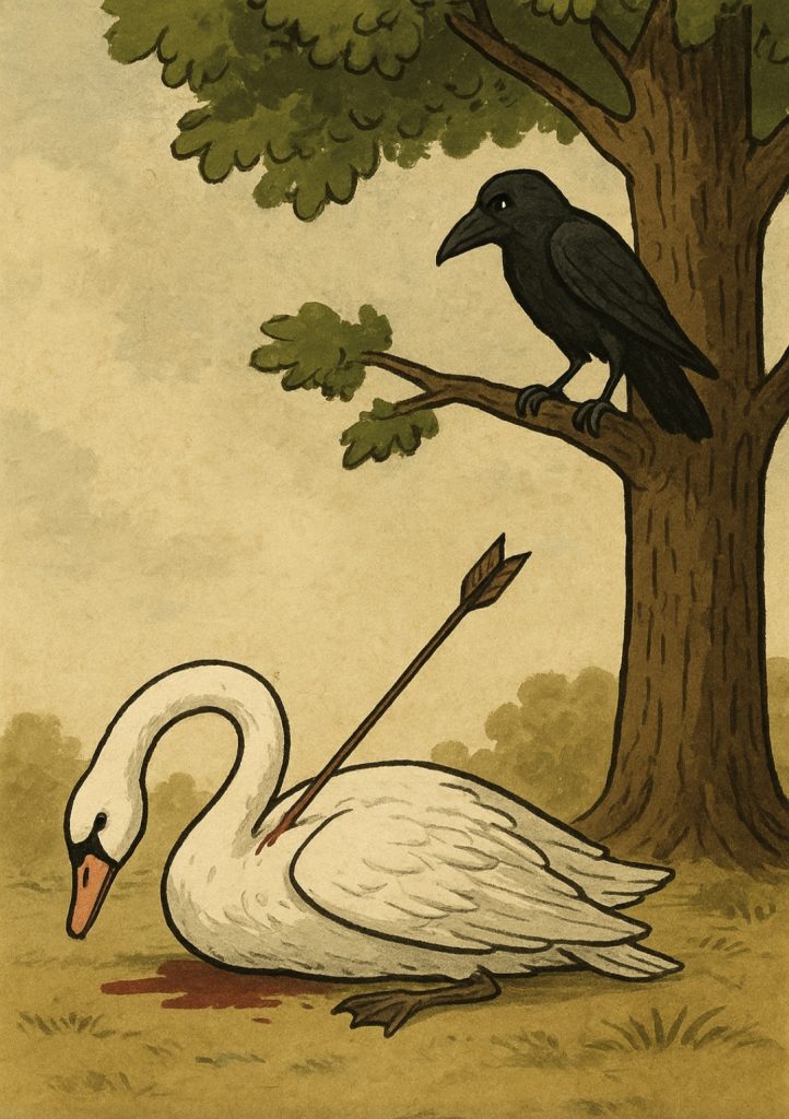 दयालु हंस ने उपकार किया पर उसे दूसरों की भूल की सजा भुगतनी पड़ी। उसकी एकमात्र गलती यह थी कि उसने दुष्ट कौए से मित्रता की थी।