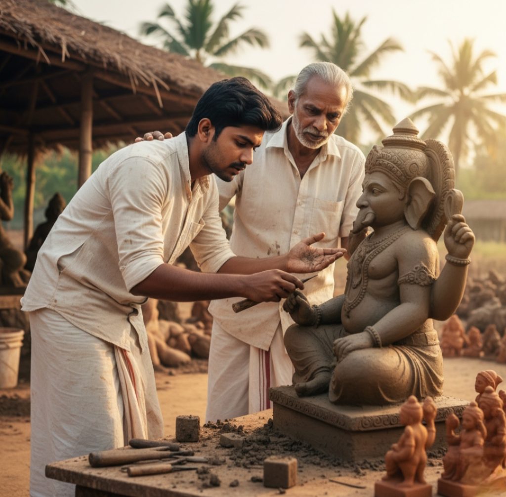 एक गाँव में एक मूर्तिकार रहता था। वह बहुत सुंदर मूर्तियाँ बनाता और अपने काम से अच्छा धन अर्जित करता था। कुछ समय बाद उसका एक बेटा हुआ। बेटे ने बचपन से ही मूर्तियाँ बनानी शुरू कर दीं और धीरे-धीरे उसमें निपुण हो गया। पिता उसकी कला देखकर खुश होता, लेकिन हर बार उसमें कोई न कोई कमी ज़रूर निकाल देता और कहता, “अगली बार इसे और बेहतर बनाने की कोशिश करना।”
