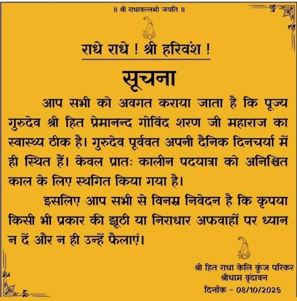 1. हम सभी प्रेमानंद महाराज जी के स्वस्थ होने एवं दीर्घायु होने की प्रार्थना करते हैं।