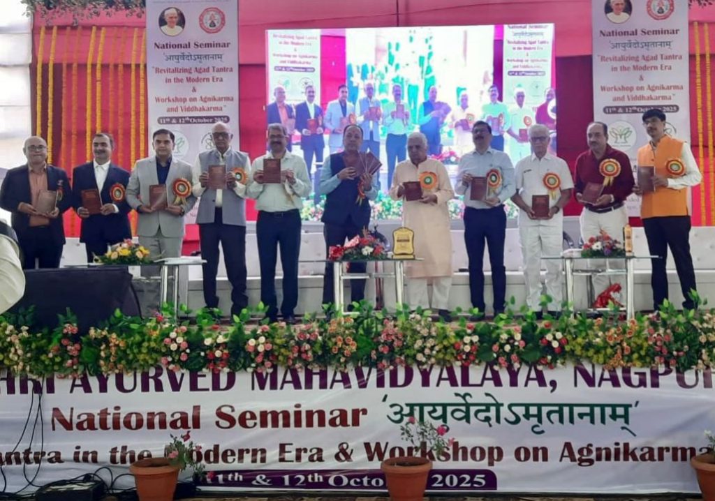 ● नागपुर । प्रोफेसर बृजेश मिश्रा की चौदहवीं पुस्तक ‘अष्टांग हृदय विमर्श’ का विमोचन दिनांक 11 अक्तूबर 2025 को श्री आयुर्वेद महाविद्यालय, नागपुर में आयोजित द्विदिवसीय राष्ट्रीय संगोष्ठी में सम्पन्न हुआ।