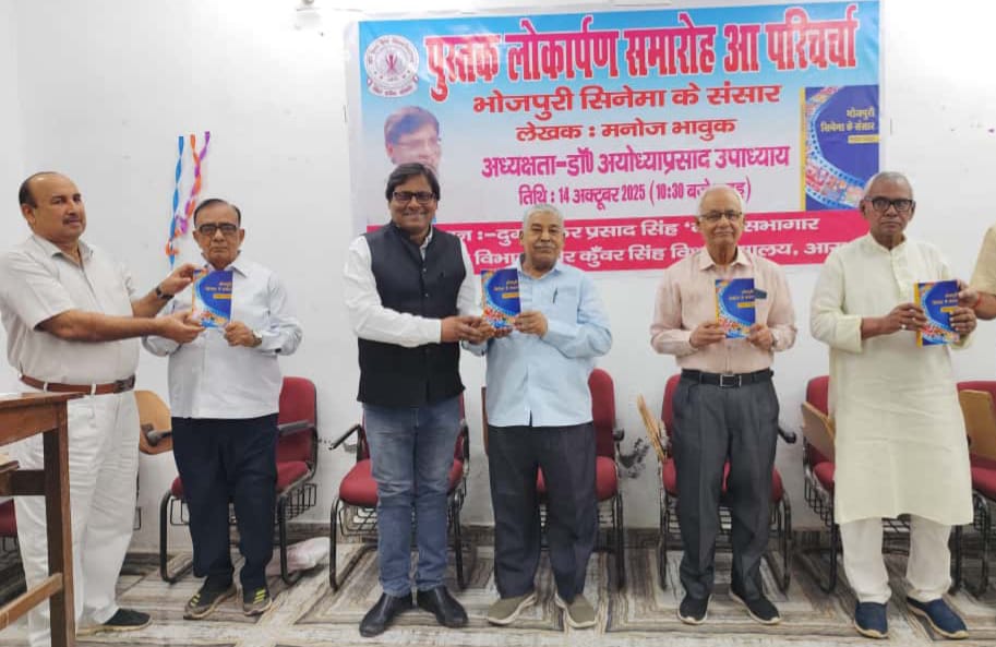 ● आरा । वीर कुँवर सिंह विश्वविद्यालय, आरा के भोजपुरी विभाग में सुप्रसिद्ध साहित्यकार मनोज भावुक की शोध पुस्तक ‘भोजपुरी सिनेमा के संसार’ का लोकार्पण हुआ। दुर्गाशंकर प्रसाद सिंह ‘नाथ’ सभागार में आयोजित कार्यक्रम में पुस्तक का विमोचन पूर्व विभागाध्यक्ष प्रो. रविंद्र नाथ राय, प्रो. अयोध्या प्रसाद उपाध्याय, प्रो. डॉ. नीरज सिंह, वर्तमान विभागाध्यक्ष प्रो. दिवाकर पांडेय तथा वरिष्ठ आलोचक जितेंद्र कुमार ने किया।
