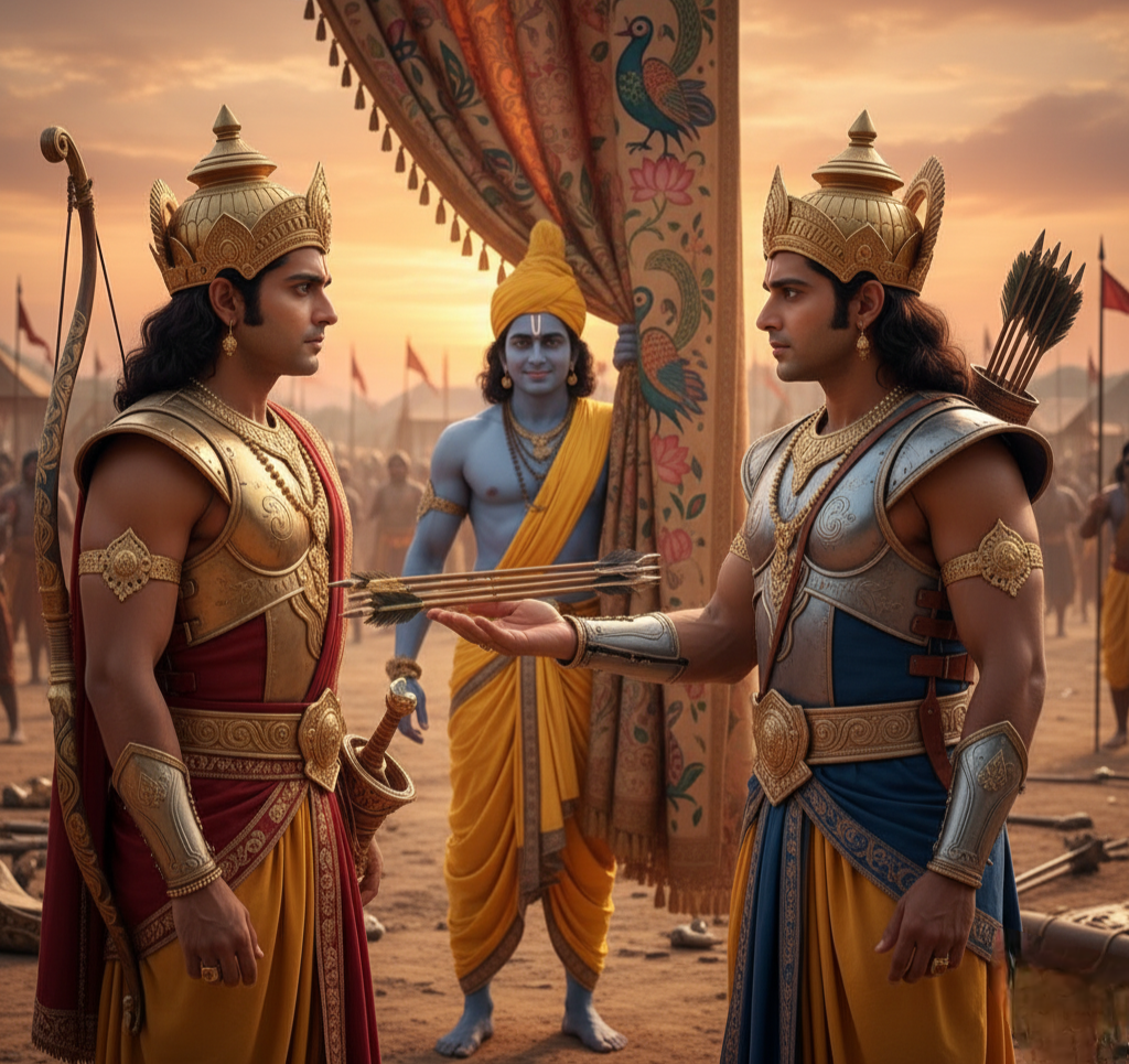 अर्जुन ने उत्तर दिया,“यदि आप अपना वचन निभाना नहीं चाहते तो कोई बात नहीं, भ्राता। अब आपके पास ऐसा कुछ बचा भी नहीं है जो मांगा जाए। सामर्थ्य के अभाव में आपको पितामह के बाणों की आवश्यकता ही क्या है? ठीक है, मैं चलता हूँ।”
