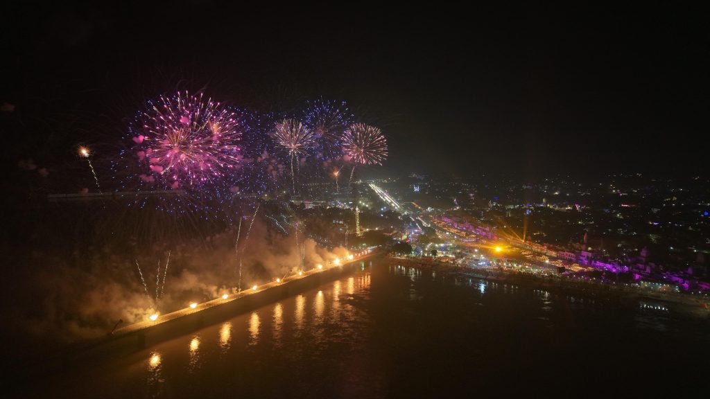 मुख्यमंत्री योगी आदित्यनाथ की उपस्थिति में 2128 वेदाचार्यों ने एक साथ सरयू आरती कर आध्यात्मिक आलोक का अनुपम दृश्य प्रस्तुत किया। सम्पूर्ण अयोध्या दीपों, पुष्पों और रोशनी से सजी थी। आकाश में आयोजित म्यूजिकल ड्रोन शो में रामायण के प्रसंगों का अद्भुत प्रदर्शन हुआ, जिसे देखकर देश-विदेश से आए श्रद्धालु भावविभोर हो उठे।