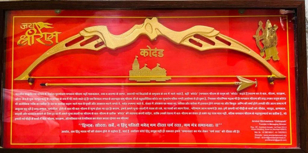 उन्होंने आगे कहा कि बहुत कम लोगों को यह पता है कि भगवान राम के धनुष का नाम कोदंड था, इसीलिए प्रभु श्रीराम को “कोदंड” कहा जाता था। कोदंड एक चमत्कारिक धनुष था जिसे हर कोई धारण नहीं कर सकता था। भिलाई में भी कोदंड नाम से एक राम मंदिर है, जिसे ‘कोदंड रामालयम मंदिर’ कहा जाता है।