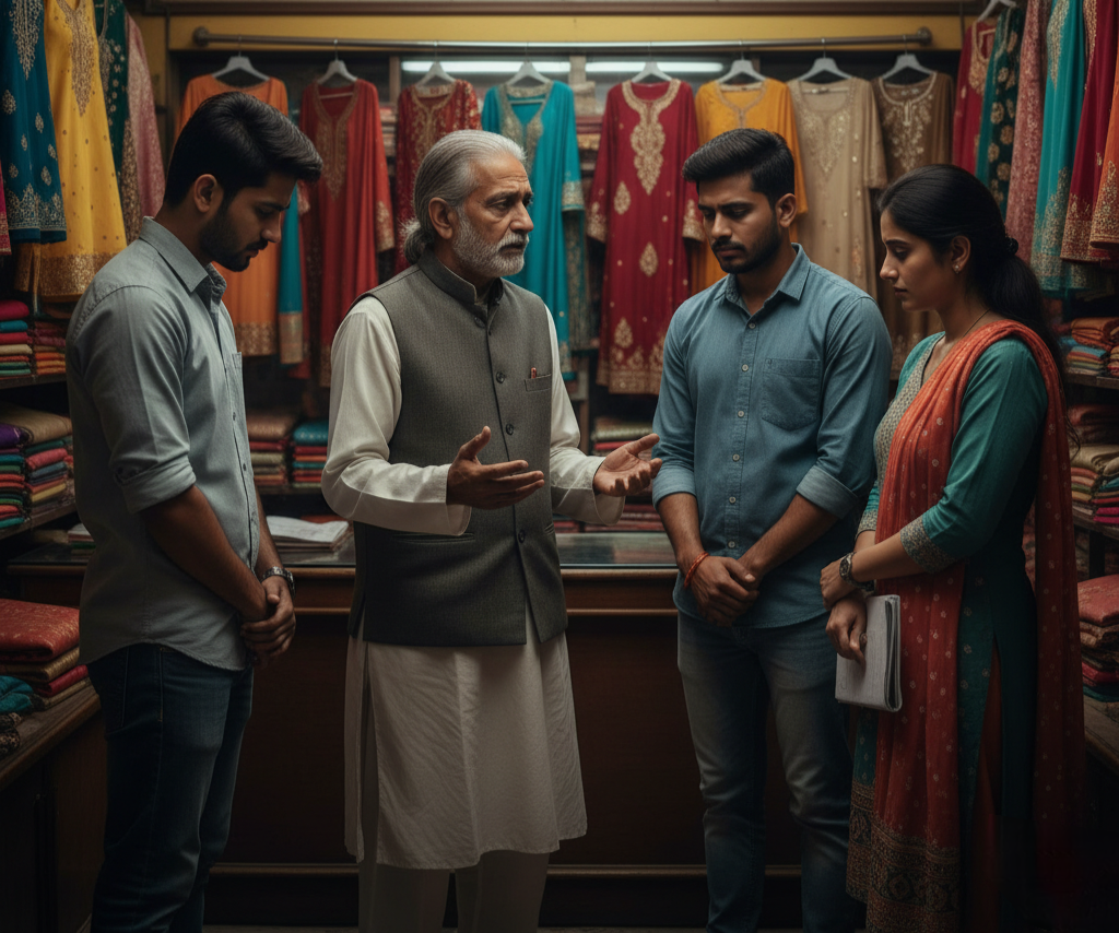 दो साल पहले ही अपनी सारी जमा-पूंजी लगाकर कपड़ों का एक छोटा-सा शोरूम खोला था, मगर अब दुकान की बिक्री आधी रह गई है। अपनी दुकान में दो लड़के और दो लड़कियाँ रखी थीं ग्राहकों को कपड़े दिखाने के लिए।