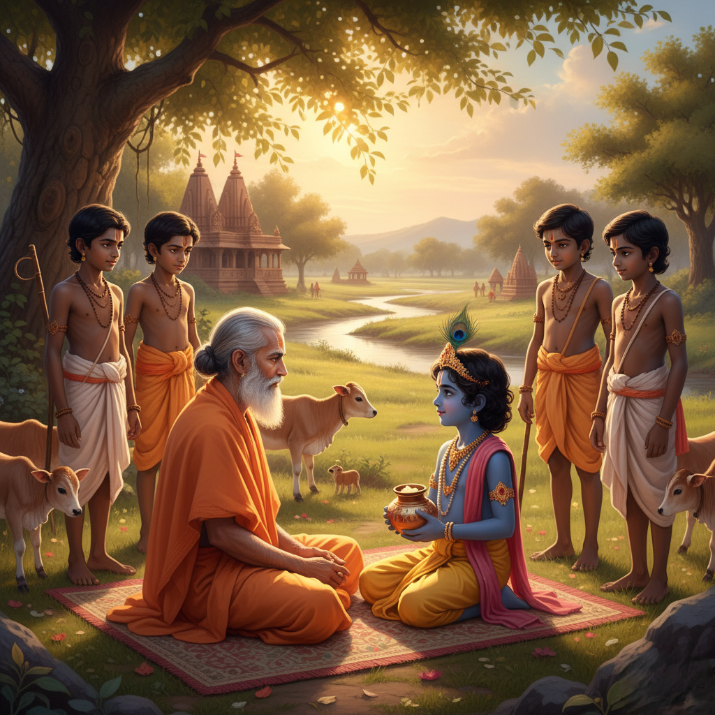 बालक मुस्कुराया, “बाबा, क्यों रोते हो? मैं तो ग्वालबाल हूँ।”