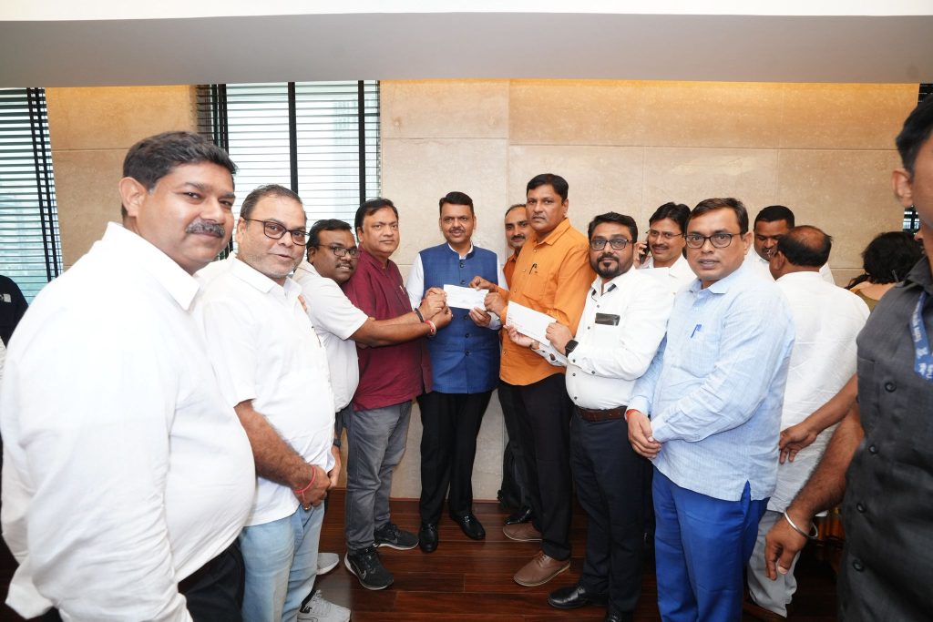 हिंदी पत्रकारों की प्रमुख प्रतिनिधि संस्था ‘मुंबई हिंदी पत्रकार संघ’ ने मंगलवार को मुख्यमंत्री देवेंद्र फडणवीस से मुलाकात कर राज्य में अतिवृष्टि से प्रभावित किसानों की सहायता के लिए मुख्यमंत्री राहत कोष में 1 लाख 11 हजार 111 रुपए का चेक भेंट किया।