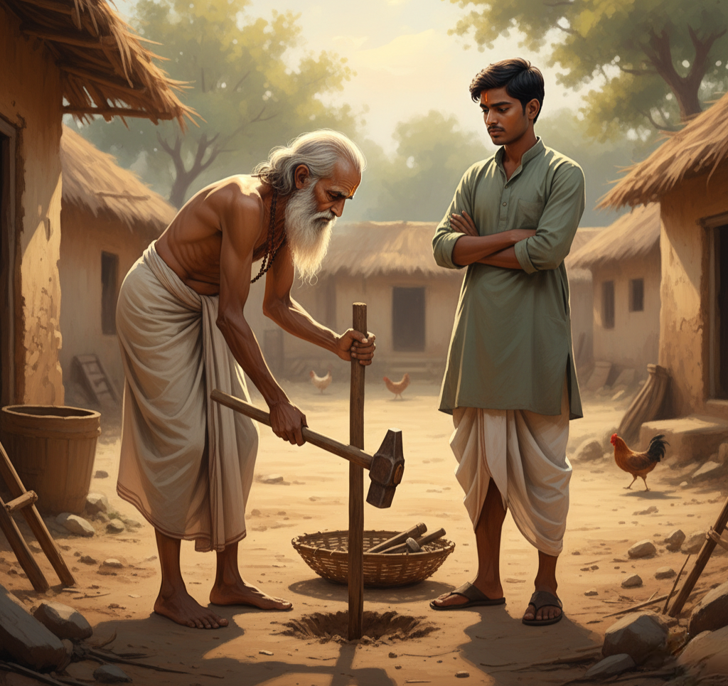 कबीर मुस्कराए और बोले, “मैं तो तुम्हें रोज उत्तर दे रहा हूं। मैं इस खूंटे पर हर दिन हथौड़ी मारकर उसकी पकड़ को मजबूत कर रहा हूं। यदि ऐसा न करूं तो किसी पशु की खींचतान से, किसी की ठोकर से या भूमि की हलचल से यह खूंटा ढीला होकर निकल जाएगा।”