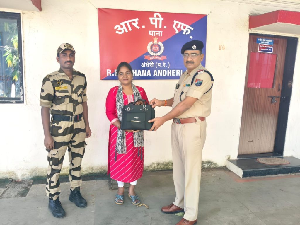 आरपीएफ ने उन्हें अंधेरी पोस्ट पर बुलाया, जहां पहचान और सत्यापन के बाद उनका बैग उन्हें सौंप दिया गया। बैग में सोने की चैन, कान के झुमके, घड़ी, बच्चे की घड़ी, ₹40,000 नकद, चश्मा, दुपट्टा, मोबाइल आदि सहित कुल लगभग ₹2,94,000 मूल्य का सामान सुरक्षित था।