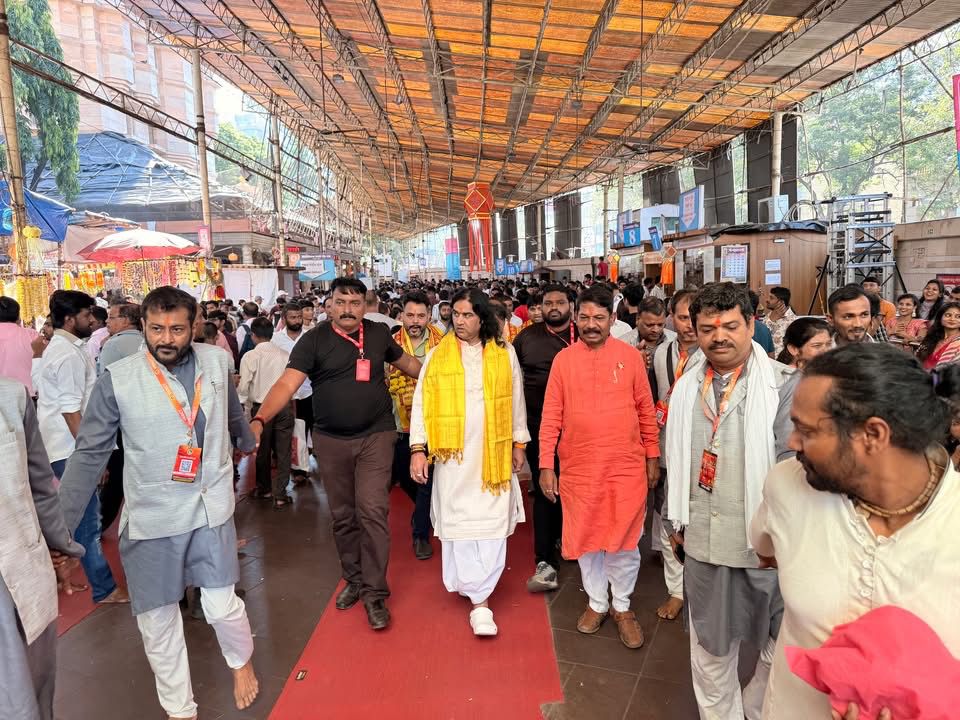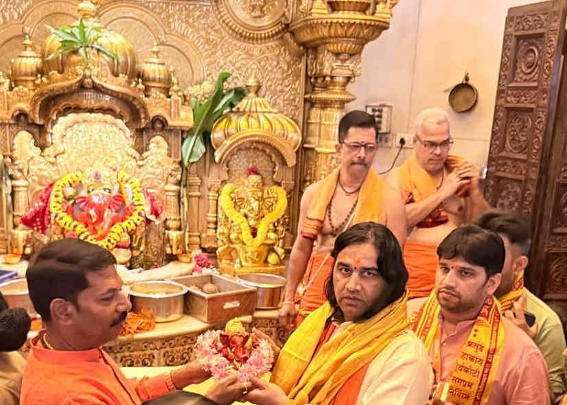 मुंबई में विश्व शांति सेवा चैरिटेबल ट्रस्ट की ओर से आयोजित भागवत महापुराण कथा की संपन्नता पर सुप्रसिद्ध कथावाचक पूज्य शांतिदूत श्री देवकीनंदन ठाकुरजी महाराज ने रविवार को देर शाम प्रभादेवी स्थित श्री सिद्धिविनायक मंदिर पहुंचकर माथा ठेका और आशीर्वाद प्राप्त किया। महाराजश्री के निजी प्रबंधक और विश्व शांति मिशन के सचिव विजय शर्मा भी साथ थे। मंदिर के पूर्व ट्रस्टी राजाराम देशमुख ने उनका स्वागत किया और अगवानी की।
