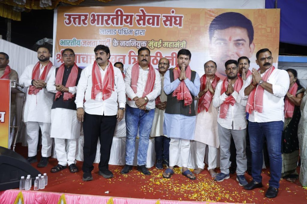 उत्तर भारतीय सेवा संघ के तत्वावधान में भारतीय जनता पार्टी, मुंबई के नवनियुक्त महामंत्री तथा श्री सिद्धिविनायक मंदिर न्यास के कोषाध्यक्ष आचार्य पवन त्रिपाठी का भव्य और आत्मीय स्वागत समारोह मालाड पश्चिम में आयोजित किया गया। कार्यक्रम का वातावरण सांस्कृतिक प्रस्तुतियों और संगीतमय कार्यक्रमों से सराबोर रहा, जिनमें समाज के सभी वर्गों की उत्साहपूर्ण भागीदारी देखने को मिली।