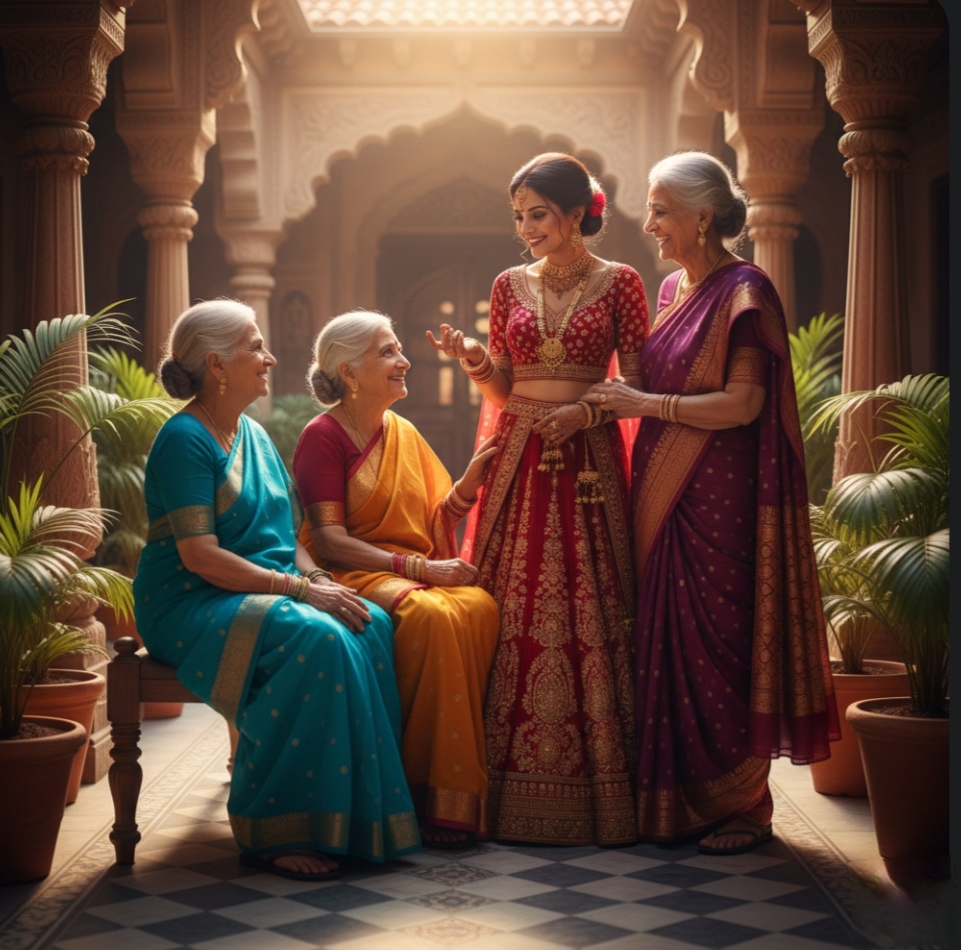 चारों माताएँ बहू के आँगन में पहुँचीं और बोलीं, “बहू-बेटी, हमारा निर्णय कर दो। हममें से कौन सबसे बड़ी है?”