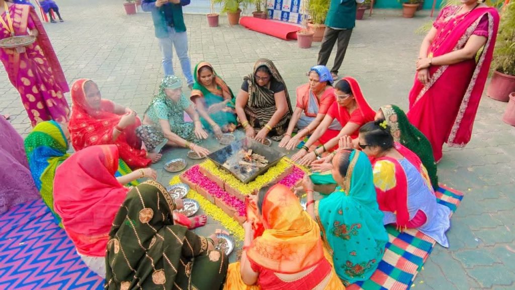 सम्मान समारोह के दौरान दादा–दादी और नाना–नानी पर पुष्पवर्षा कर उनका सम्मान किया गया तथा उनकी आरती उतारी गई।