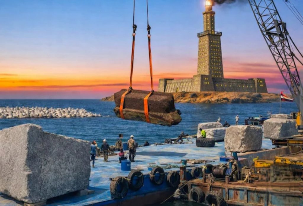 मिस्त्र के अलेक्जेंड्रिया तट के पास भूमध्यसागर की गहराइयों में सदियों से दबा इतिहास फिर सामने आ रहा है। गोताखोरों और भारी क्रेनों की मदद से प्राचीन Lighthouse of Alexandria, जिसे Pharos of Alexandria भी कहा जाता है, के विशाल पत्थरों को समुद्र की तलहटी से निकाला जा रहा है। यह वही ऐतिहासिक संरचना है, जिसकी गणना प्राचीन दुनिया के सात अजूबों में होती थी और जो कभी बंदरगाह के प्रवेश द्वार पर खड़ी थी।