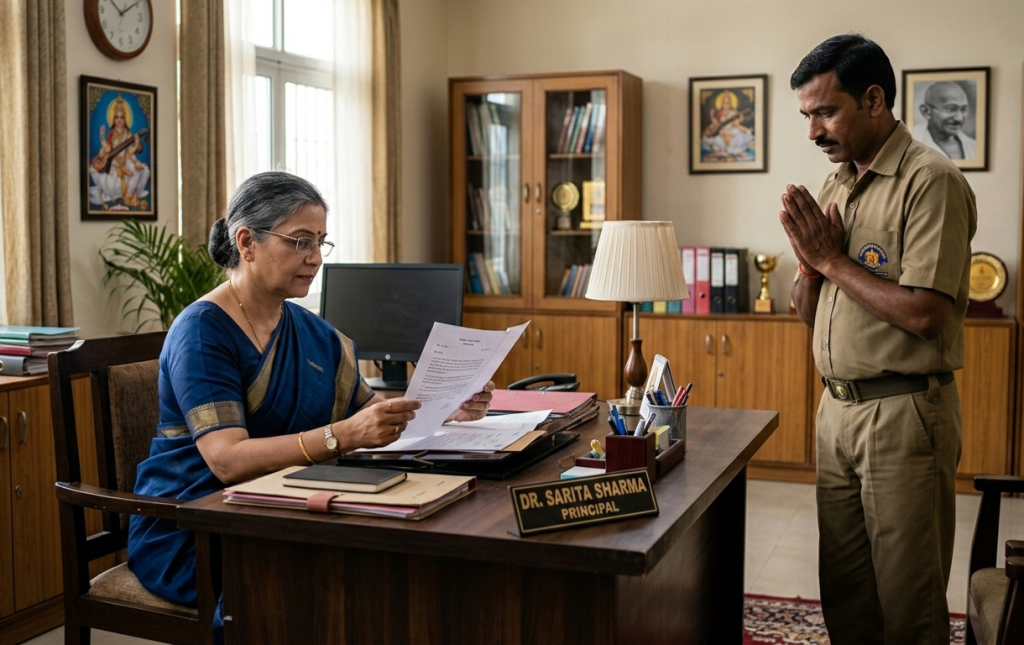 प्रधानाचार्या ने एक कागज़ की ओर संकेत करते हुए कहा, “इसे पढ़ो।”