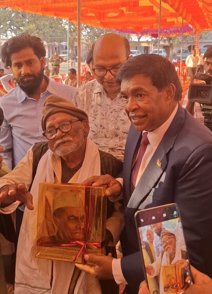 देश के प्रथम राष्ट्रपति डॉ. राजेंद्र प्रसाद की पुण्यतिथि पर उनकी जन्मभूमि जीरादेई में बिहारी कनेक्ट ग्लोबल एवं बिहार फाउंडेशन लंदन चैप्टर द्वारा आयोजित गरिमामय समारोह में मॉरीशस के पूर्व राष्ट्रपति पृथ्वीराज सिंह रूपम ने 105 वर्षीय लोकगायक व स्वतंत्रता सेनानी जंग बहादुर सिंह को ‘सन ऑफ सिवान, प्राइड ऑफ बिहार’ सम्मान से अलंकृत किया। राष्ट्रपति का बड़प्पन और संस्कार यह है कि वयोवृद्ध गायक को सम्मानित करने के लिए वह स्वयम मंच के नीचे उतर आए।